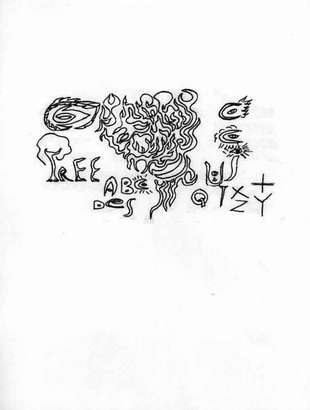 More Information: Judith Copithorne was a poet who danced in Helen Goodwin’s early Sound Gallery productions, and an early practitioner of concrete poetry and asemic writing. These images from her sketchbook are Eye Alphabet,1964; Fingers, 1963, and Blur, 1964.
