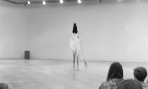 More Information: In 1968 New York artist Deborah Hay hosted a workshop in Vancouver, sponsored by the Douglas Gallery, Intermedia, UBC and The Vancouver Art Gallery. Many members of the art community attended these workshops. This was the first of three workshops in Vancouver by New York’s Judson Dance Theater. The subsequent workshops were hosted by Yvonne Rainer and Steve Paxton. These photos are documentation from the culminating performance of the workshop at the Vancouver Art Gallery. Glenn Lewis is pictured performing. Collection of the artist.